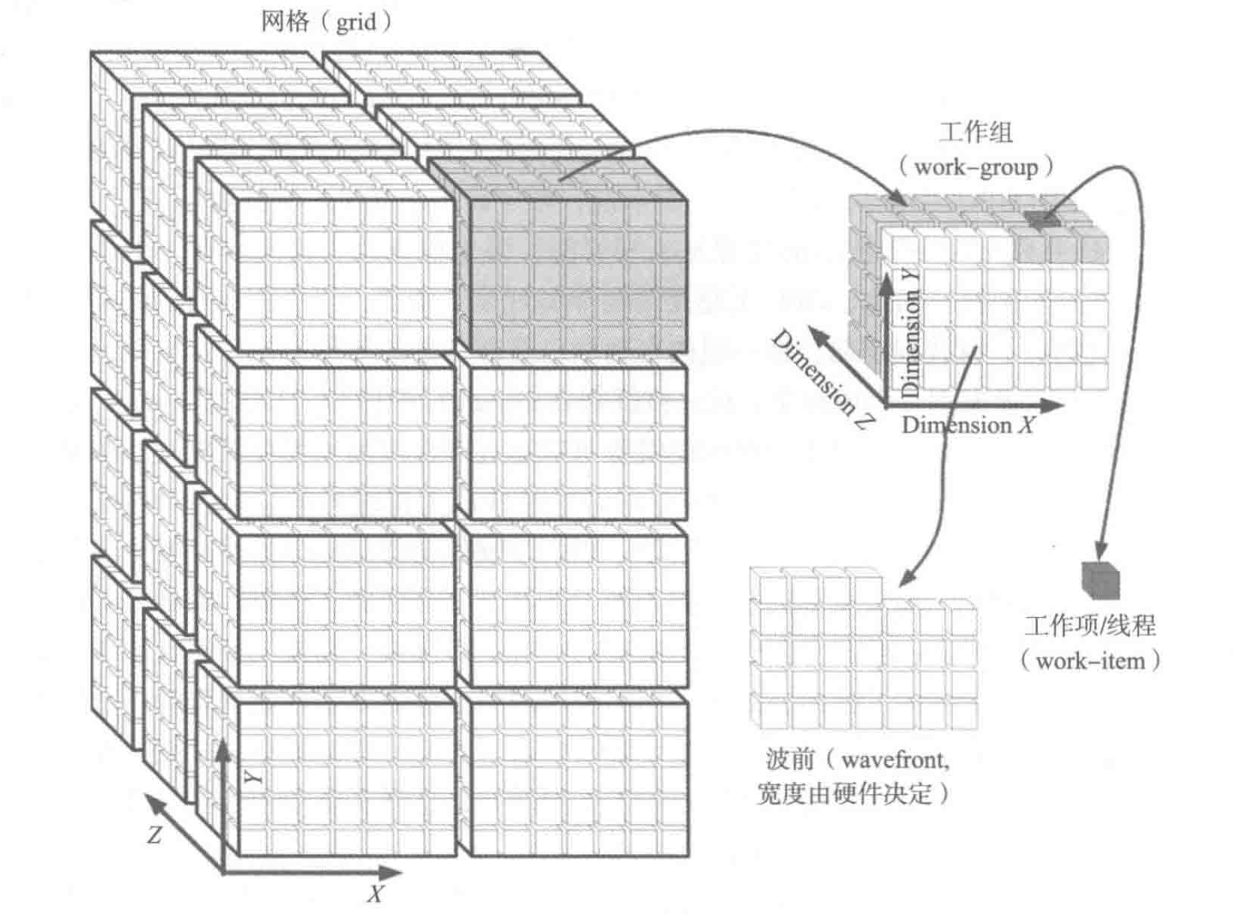 GPU的一个内核包括多个计算和内存处理流水线,支持多个工作项/线程同时执行。这些同时运行的线程在OpenCl术语称为“波前”(wavefront)。